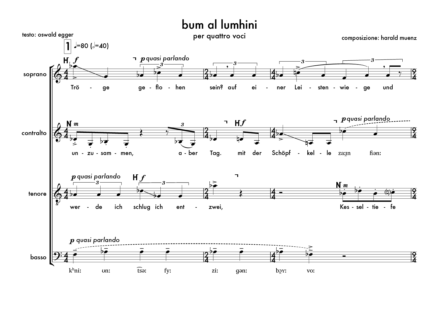 Zur Werkstatt-Aufführung kommt das Chorstück „bum al lumhini“ (2010) per quattro voci: