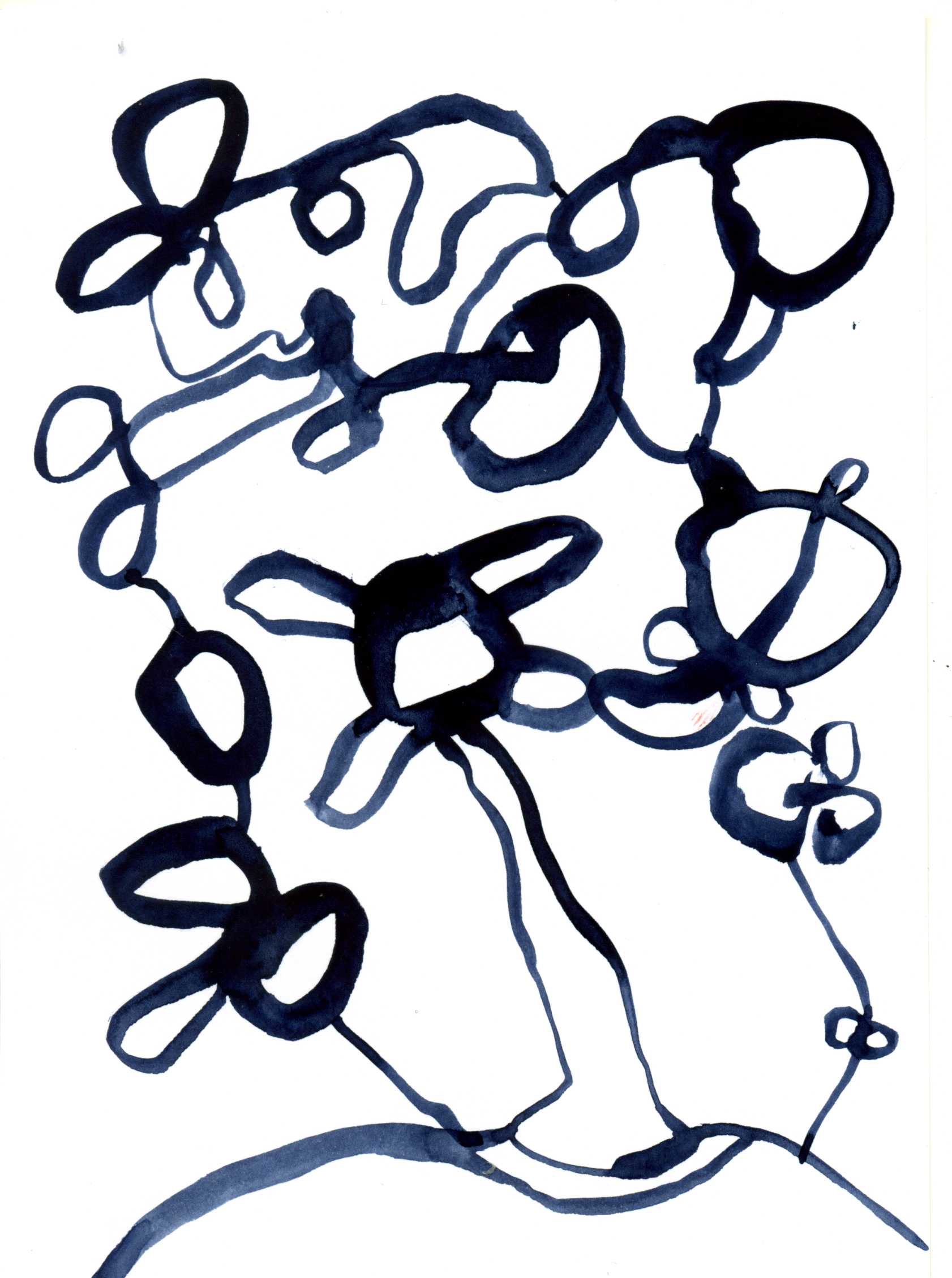 “That is to say, through the endless displacement of seeing the world through another’s hobby horse, through the eyes of a Walter or a Toby Shandy, one is brought closer to the things themselves, to the finally laughable enigma of ordinary life“, schreibt Simon Critchley. (10) Durch die endlosen Verschiebungen, die sich der Weltbetrachtung durch den Filter persönlicher Obsessionen verdanken, gerät der Leser, die Leserin schließlich näher an die Dinge selbst (oder: ‘an sich’, gar) heran; er oder sie nähert sich dem letztlich lachhaften Rätsel des gewöhnlichen Lebens. Hierzu ein blühendes Steckenpferd in Tintenblau.